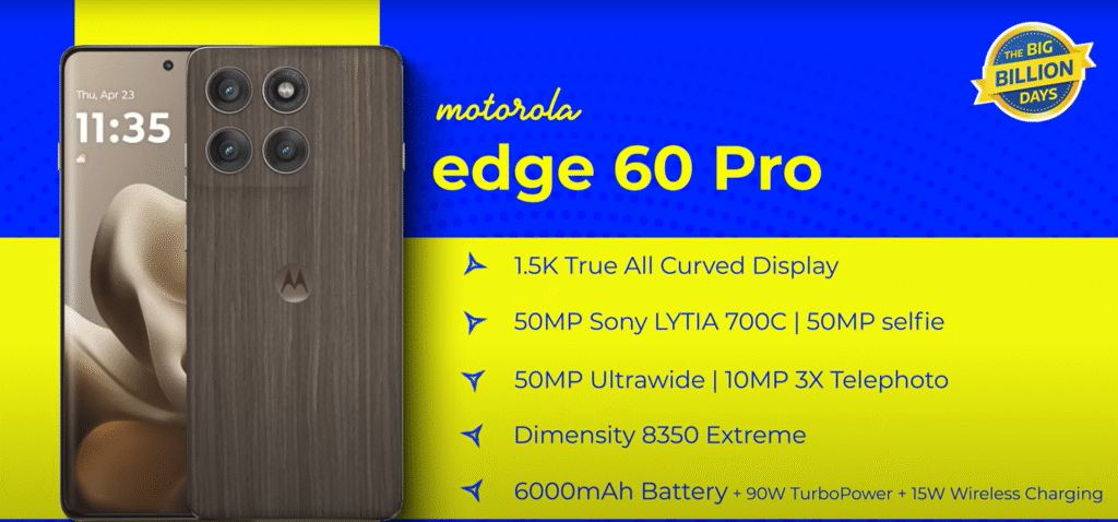 Moto Edge 60 Fusion का लॉन्च प्राइस 22,999 है लेकिन Flipkart Big Billion Day में यह फोन आपको 20,999 में मिलेगा बैंक ऑफर के साथ इस फोन को आपमात्र 19,999 में ले सकता है।